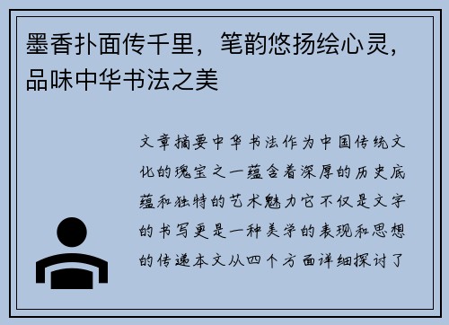 墨香扑面传千里,笔韵悠扬绘心灵,品味中华书法之美